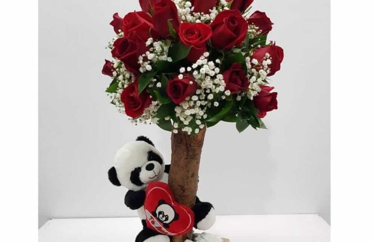 Bonsai en rosas rojas, que expresan alegría y amor.