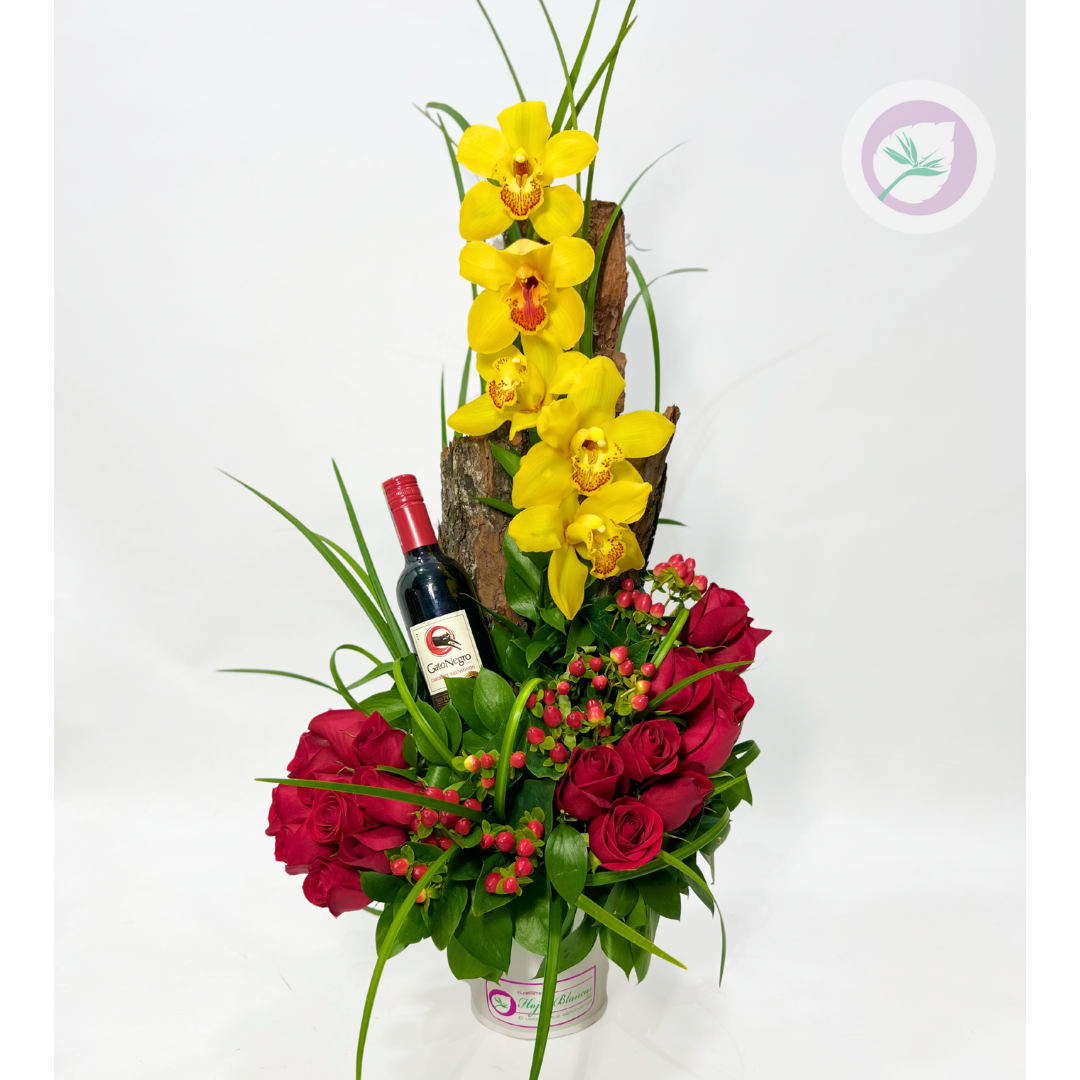 Regala un hermoso Arreglo de rosas y orquideas con vino en medellin para aniversario o cumpleaños Tenemos los mejores arreglos para felicitar a esa persona tan querida – En Floristería Hojas Blancas tenemos cobertura en Medellín, Rionegro, La Ceja, Marinilla, Bello, El Poblado, Laureles, Itagüí, entre otros municipios del área metropolitana y oriente antioqueño.