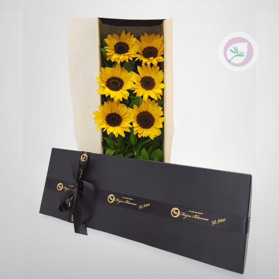 Regala una hermosa caja de lujo con girasoles elegantes, tenemos los arreglos hermosos para tu persona especial.