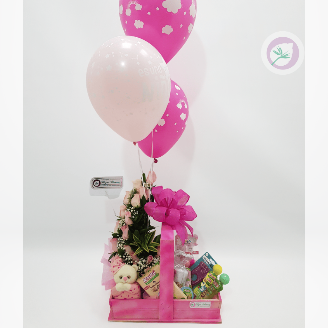 Regala una hermosa canasta de rosas rosadas para una bebé. Tenemos los arreglos hermosos para tu persona especial