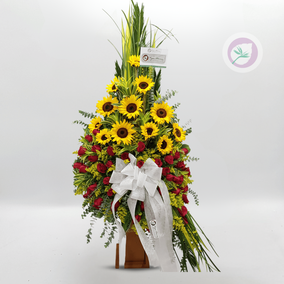 Este ramo de flores es ideal para una misa exequial o velorio, compuesto con hermosas rosas rojas y girasoles !ademĂĄs. Resulta una excelente opciĂłn para enviar tu solidaridad en momentos de duelo!