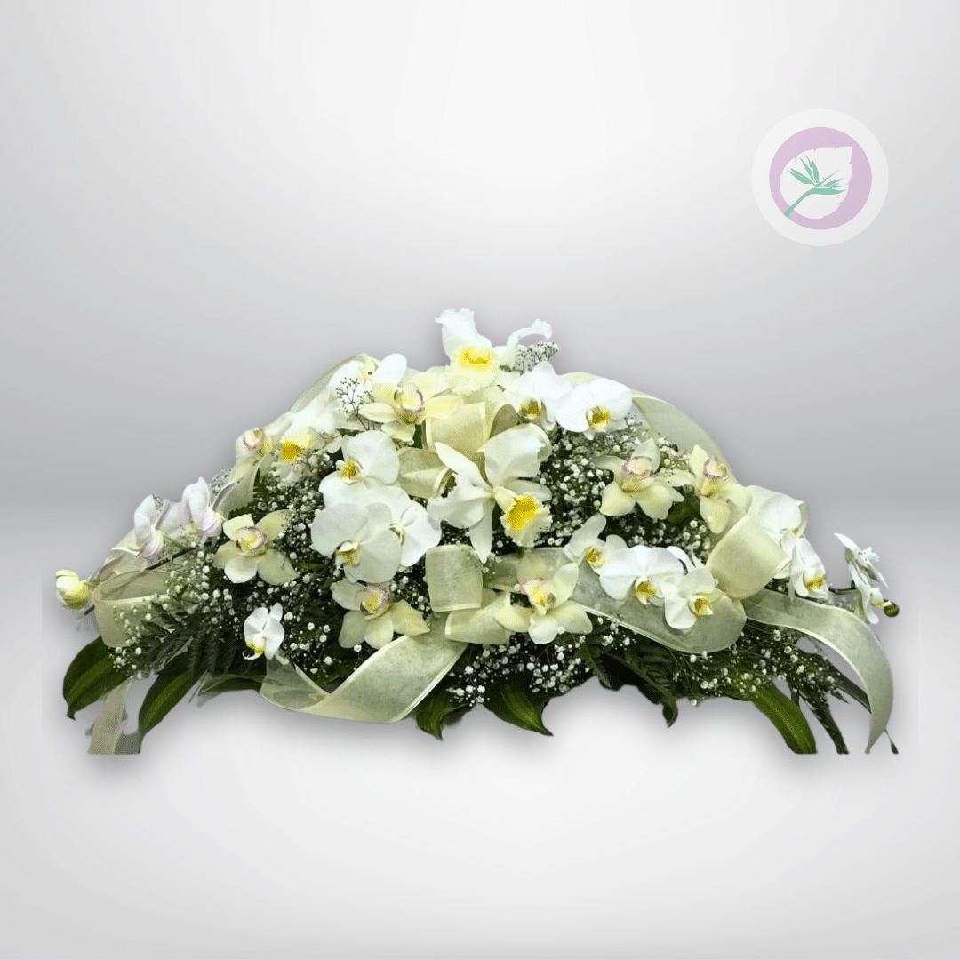 Variedad de Orquídeas blancas con sentimiento de respeto y recuerdo por la persona fallecida.