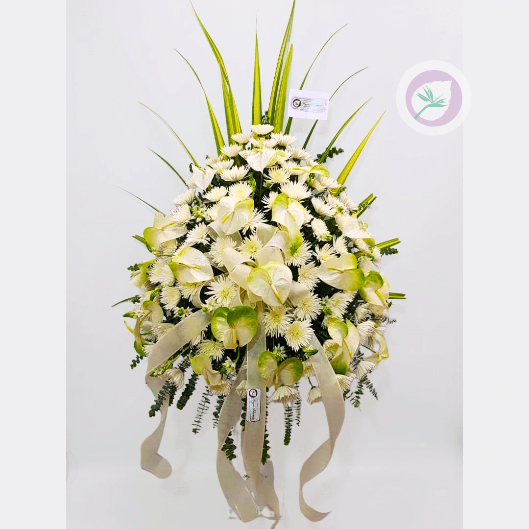 Follaje: Helecho cuero, rusco, hoja de lino y eucalipto.