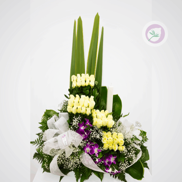 Ramos de flores funebres para expresar condolencias y honrar la memoria de ese ser que ha partido – Este arreglo funebre con rosas y orquideas es una excelente opción para dar el pésame.